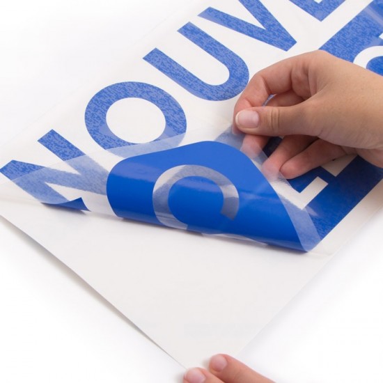 Découpe de vinyle avec un film transparent pour faciliter la pose